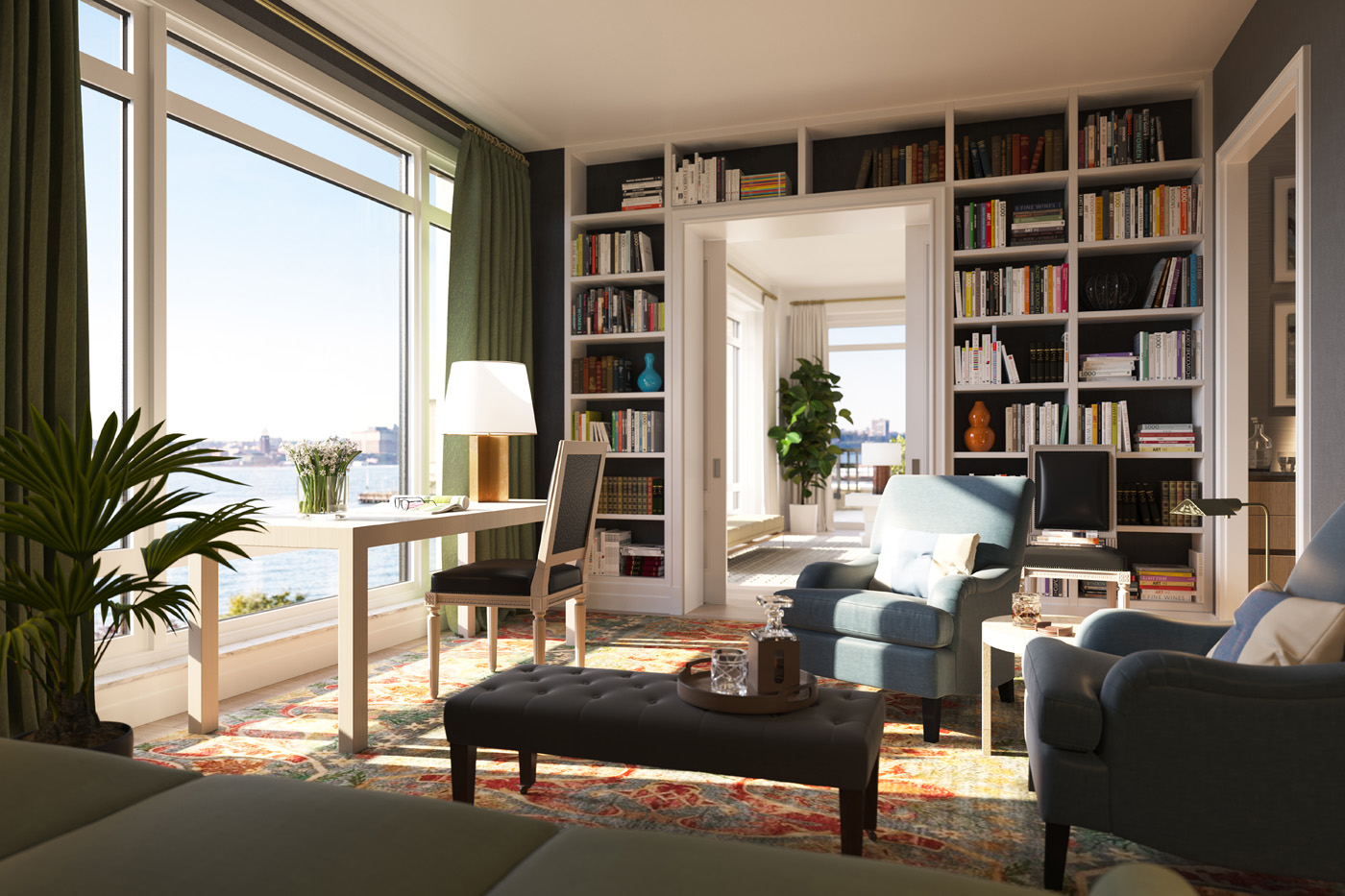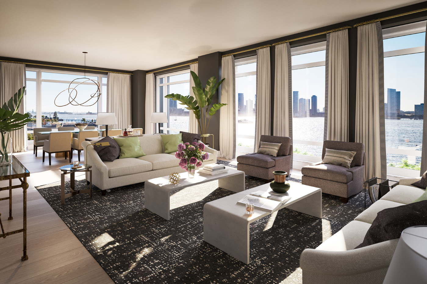 Cada residência realça a vista, seja de frente para o rio, as ruas de Tribeca, ou o terraço privativo.