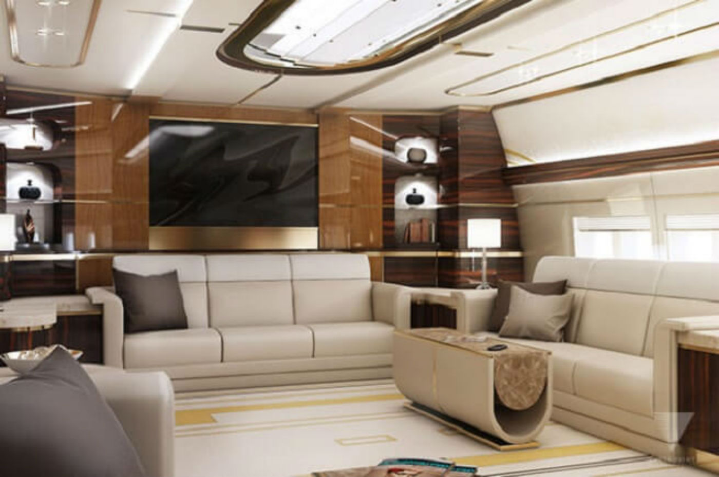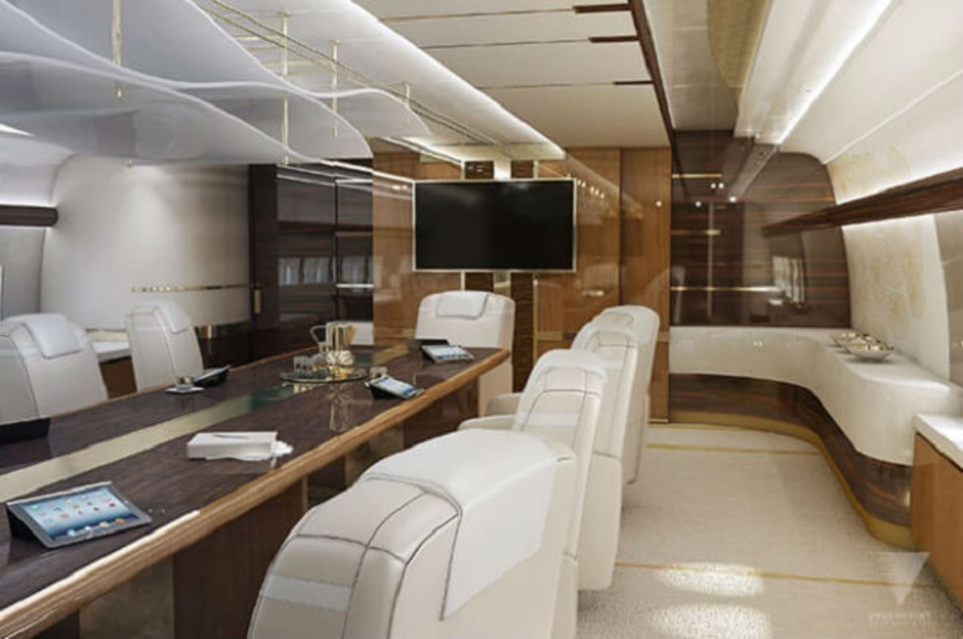 Avião luxuoso: detalhes de cada ambiente