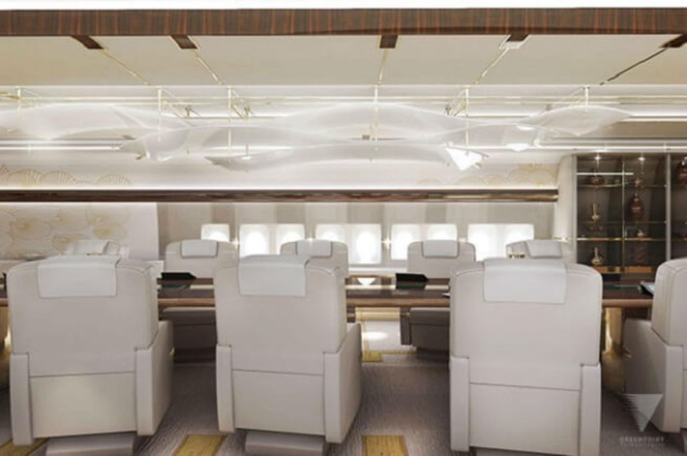 Um bilionário “misterioso” encomendou uma reforminha de cair o queixo para a empresa Greenpoint Technologies em um Boeing 747-8 que, se fosse usado como um avião comum, transportaria 410 passageiros tranquilamente. Veja as fotos do avião totalmente decorado!