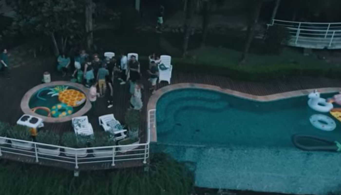 A parte de fora da mansão é tão grande, que foi lá que aconteceu a festa de Leo Dias, um churrascão para vários convidados.