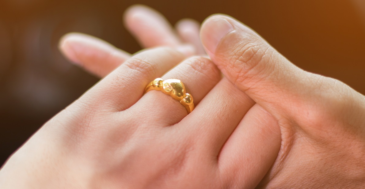 Para um anel de compromisso, não é necessário que tenha um diamante ou outra pedra preciosa. Você pode escolher um modelo que é feito com uma única peça de ouro, moldada de tal forma que tenha um coração ou outro elemento que imprima a personalidade da pessoa amada.