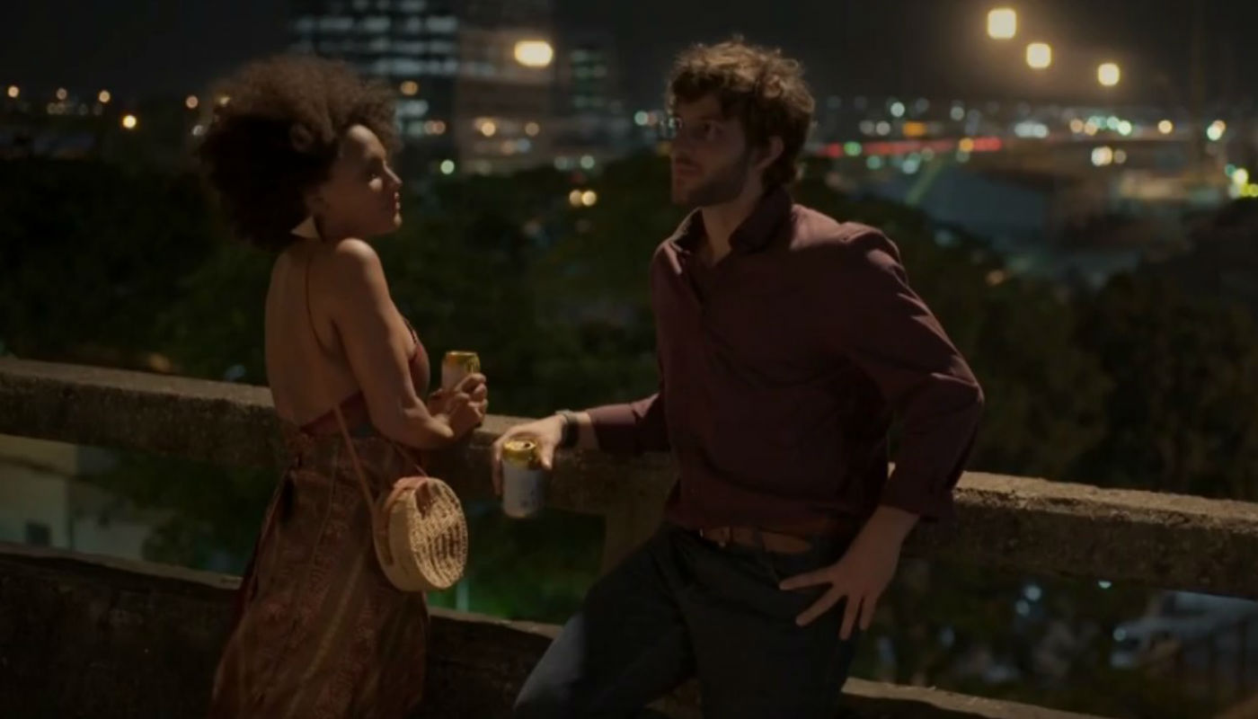 chay suede e jessica ellen se beijando ao amanhecer sentados na beira de um viaduto abandando ao som de deusa do amor em amor de mae que cena linda