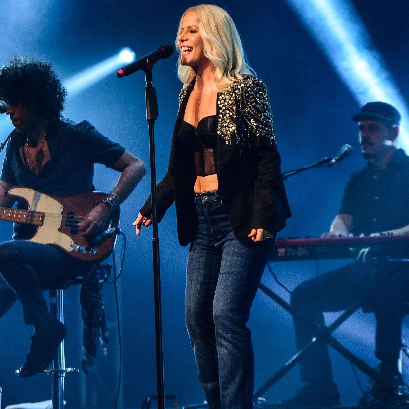 Plena aos 59 anos de idade, Paula Toller usou um top transparente que deixava a barriga à mostra em um show recentemente.