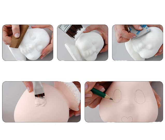 - 1 Lixe a cabeça de isopor com a lixa n° 220 para tirar as rebarbas.