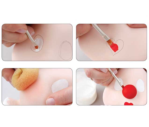 - 4 Com o pincel chato nº 16 e a tinta pele, pinte toda a cabeça.