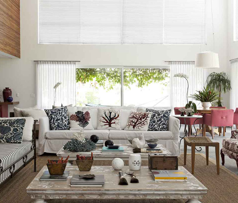 O branco e os tons crus também são ótimas pedidas para a casa de praia, mesclados, ou não, a cores vibrantes, dependendo do estilo dos moradores.