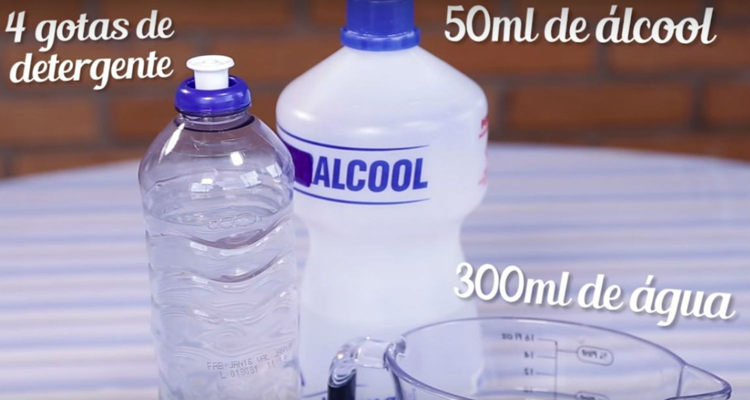 – 300 ml de água + 50 ml de álcool + 4 gotas de detergente;