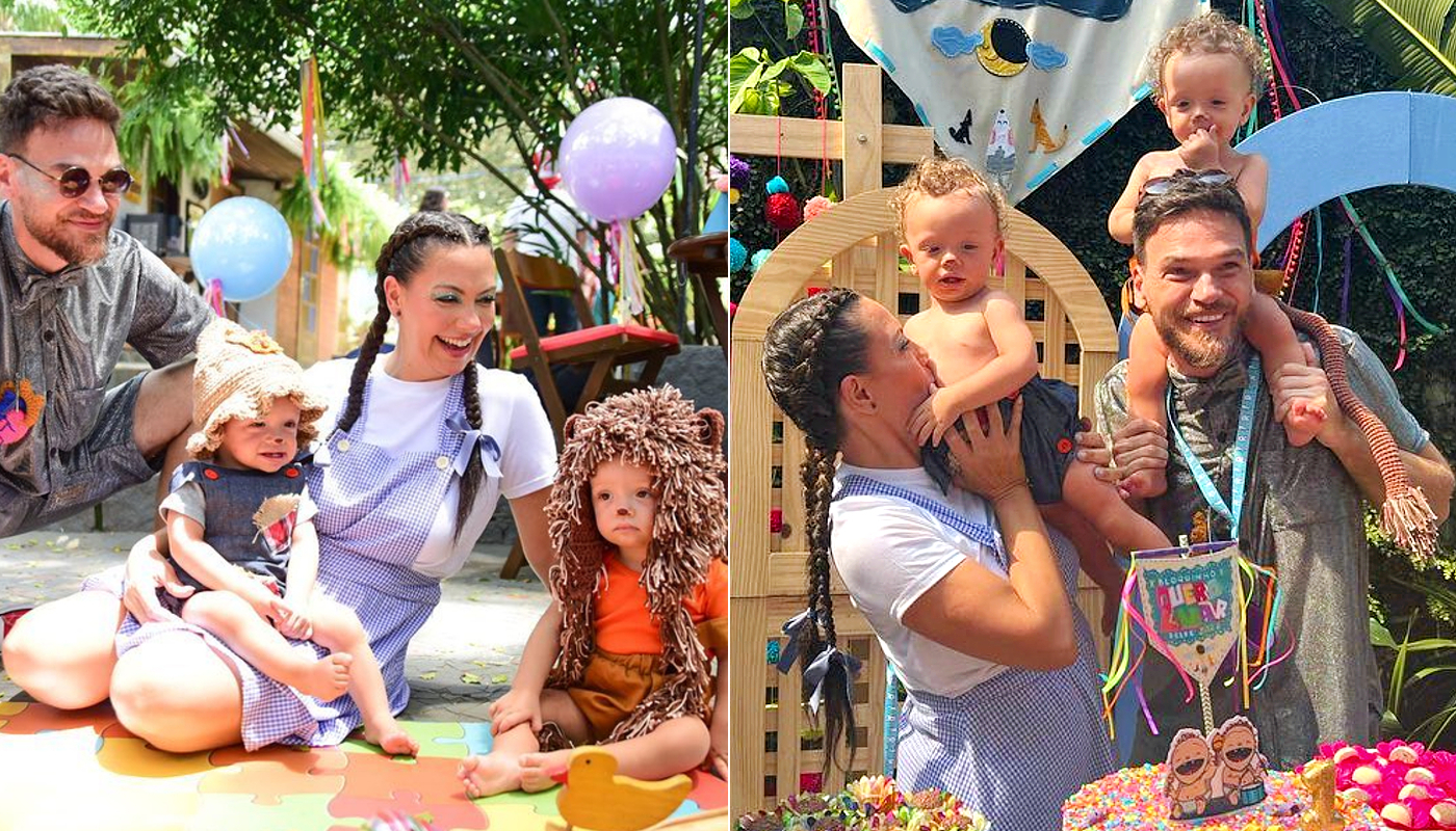 Fabiula Nascimento e Emilio Dantas celebraram o primeiro ano de vida de Roque e Raul com uma festa ao ar livre com o tema “O Mágico de Oz”.