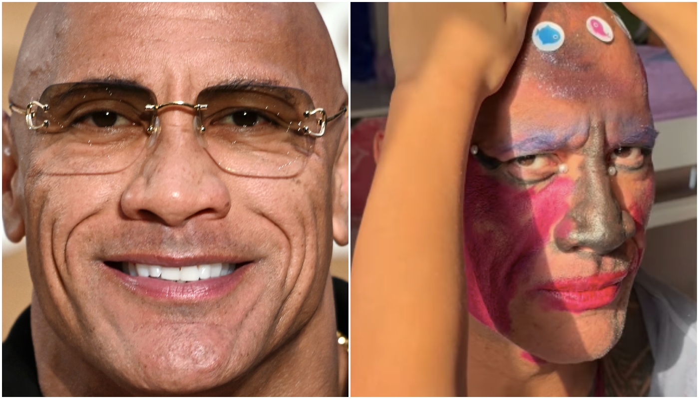 Usando o Instagram, o ator Dwayne Johnson, mais conhecido como The Rock, mostrou uma cena fofa junto das filhas. Em um vídeo, ele apareceu com o rosto completamente pintado, usando brincos e com adesivos colados na pele – tudo obra das filhas, Jazzy e Tia, que criaram uma cena realmente engraçada para os fãs do astro.