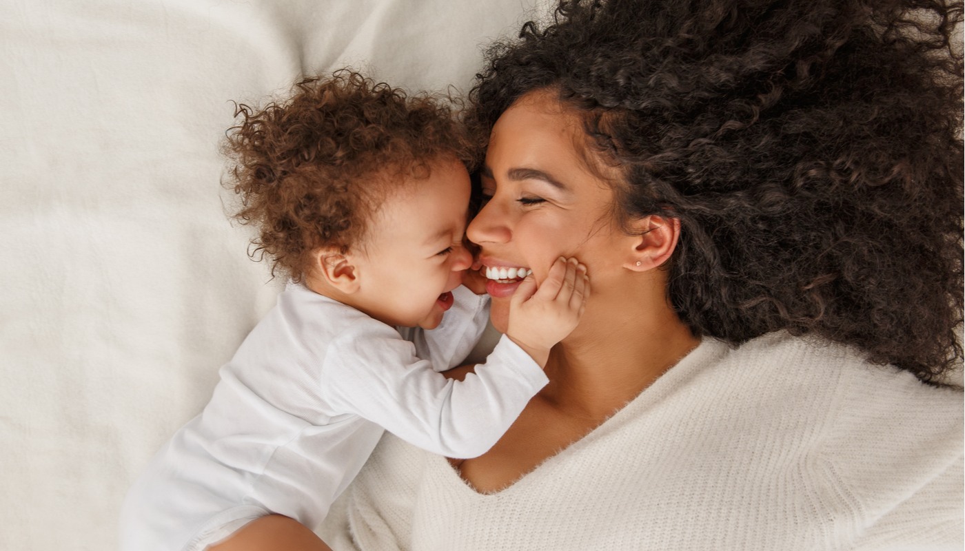Entre 3 e 4 meses de vida, você vai perceber que se fizer isso com frequência, seu filho vai te observar e começar a repetir o gesto.