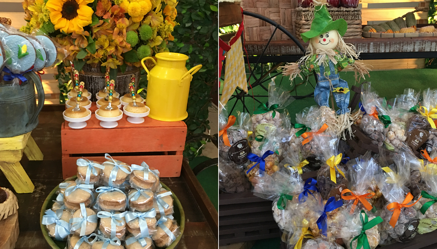 A mesa principal, cheia de cores, foi decorada com espantalhos, flores e bandeirinhas. Seu estilo era rústico, para lembrar as festas no interior do País, onde a celebração é ainda mais forte.