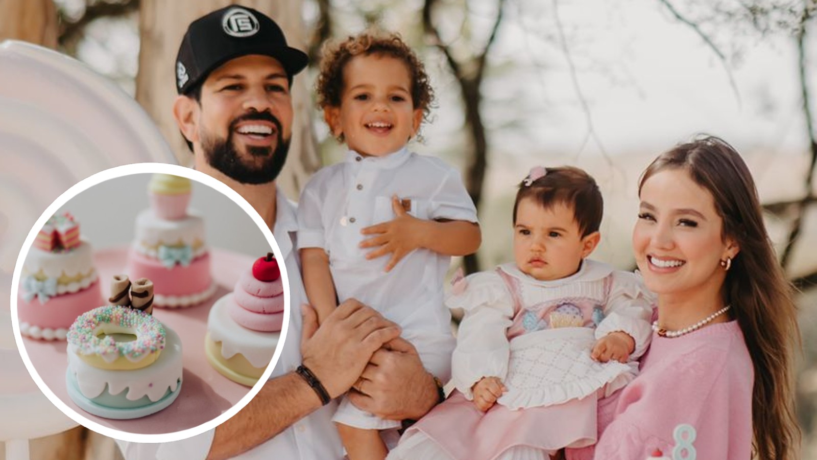 Confeitaria vira tema de mesversário da filha de Biah e Sorocaba: doces decorados roubam a cena