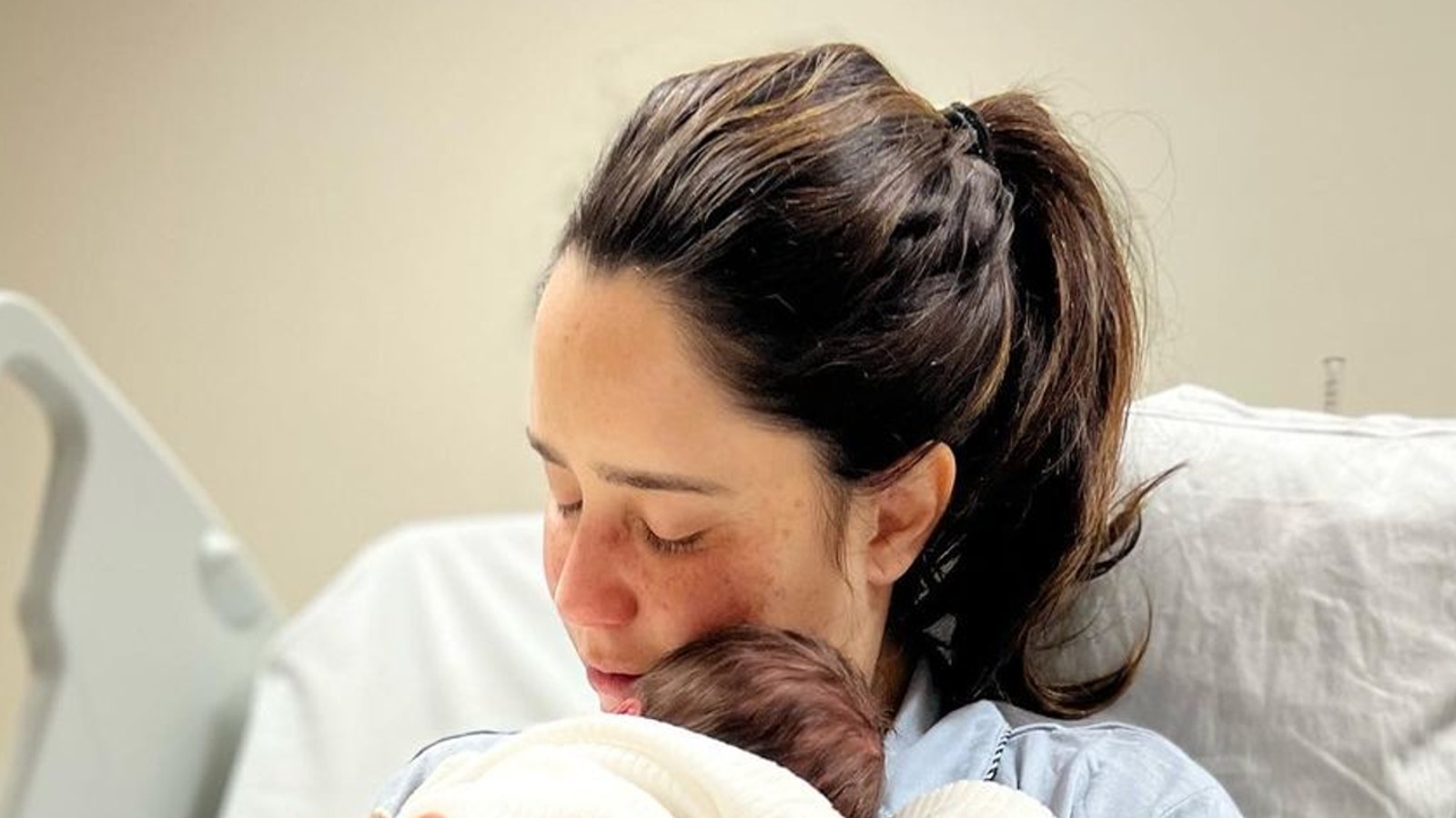 Na foto publicada, a atriz aparece ainda na maternidade, com o pequeno no colo e segurando um terço, escrevendo na legenda a data do nascimento.