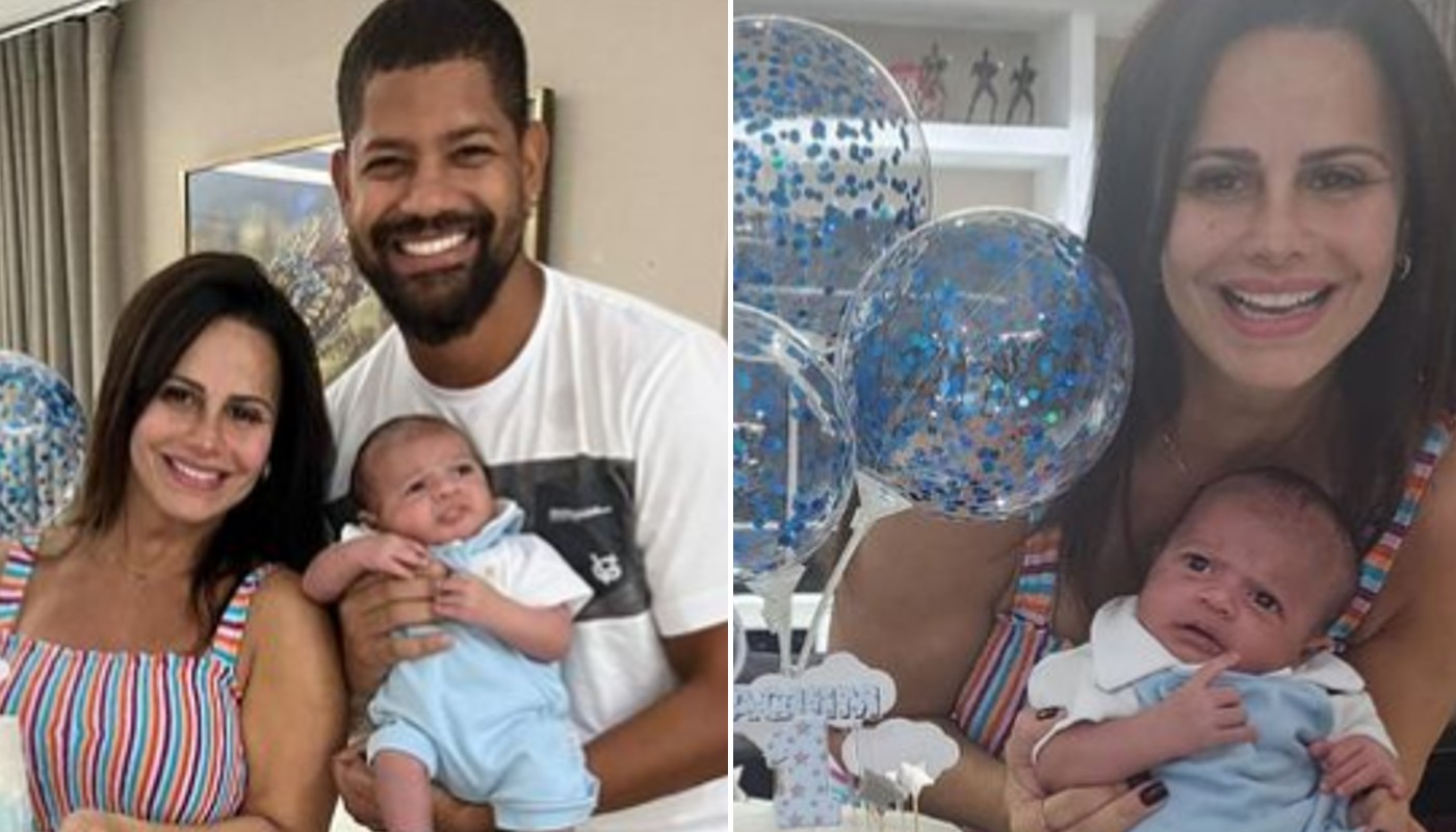 Na última quinta-feira (6), o bebê de Viviane Araújo e Guilherme Militão completou seu primeiro mês de vida. Para celebrar, os papais preparam uma festinha em casa, com direito a uma simples decoração toda em azul.