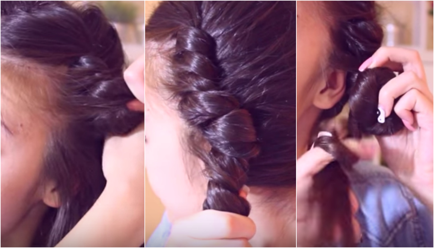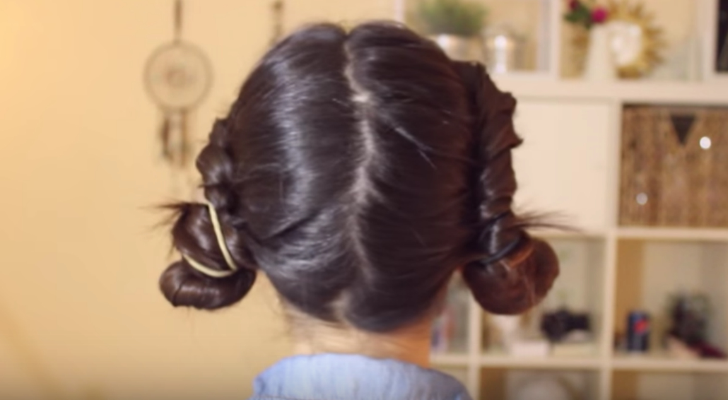 A ideia é chegar até a nuca com todos os fios de cada lateral preso ao rabo. Finalize enrolando todo o comprimento em um grande rolo e amarre em um coque lateral bem apertado, como uma Princesa Leia, da “Star Wars”. Repita do outro lado, para ficar com esse visual: