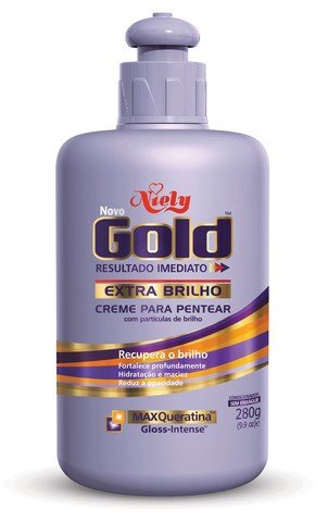 NIELY GOLD EXTRA BRILHO – (recupera o brilho, fortalece, hidrata, dá maciez e reduz a opacidade). A linha vem com o ativo Gloss-intense.