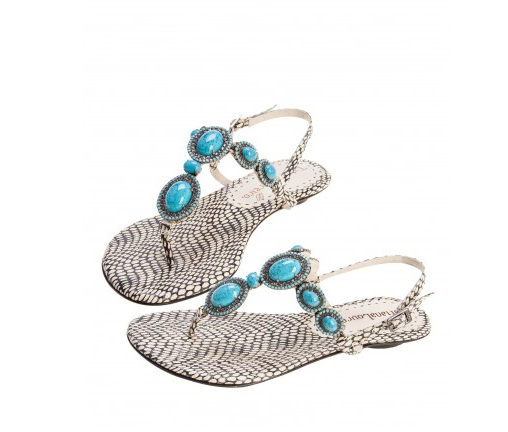 Rasteira com pedra turquesa Tatiana Loureiro para Ka