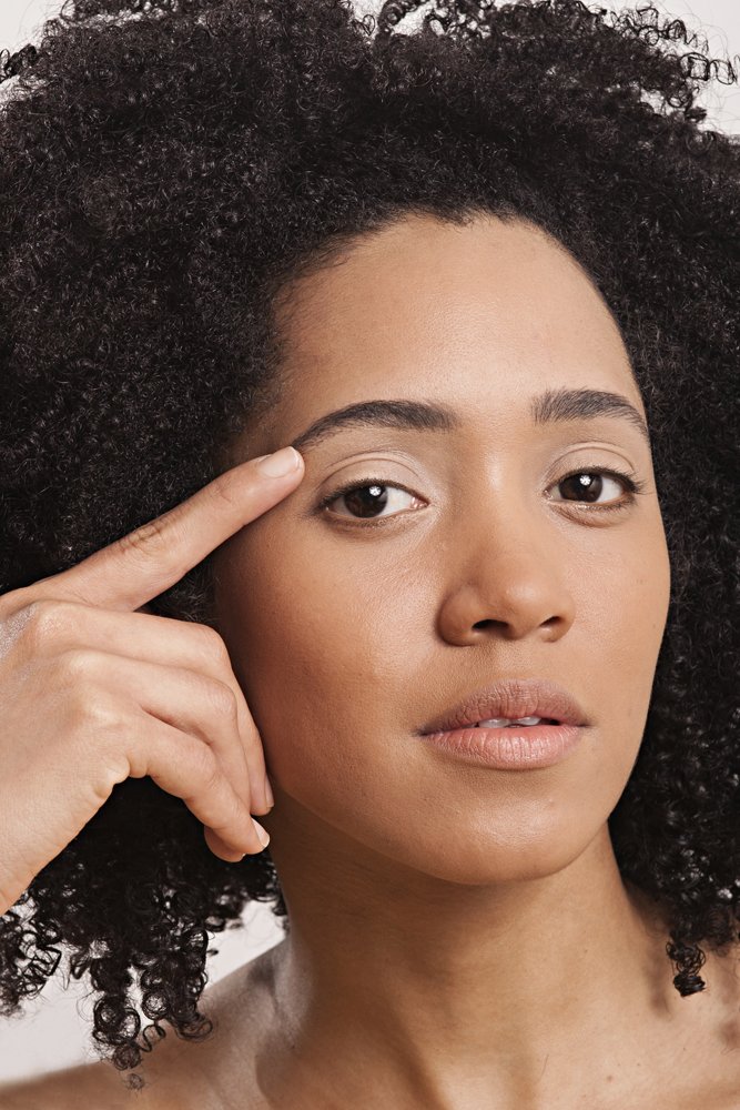 Prepare o rosto com base líquida em tonalidade exata da pele, corretivo pra olheiras e pó facial. Preencha as falhas da sobrancelhas com sobra cinza opaca.