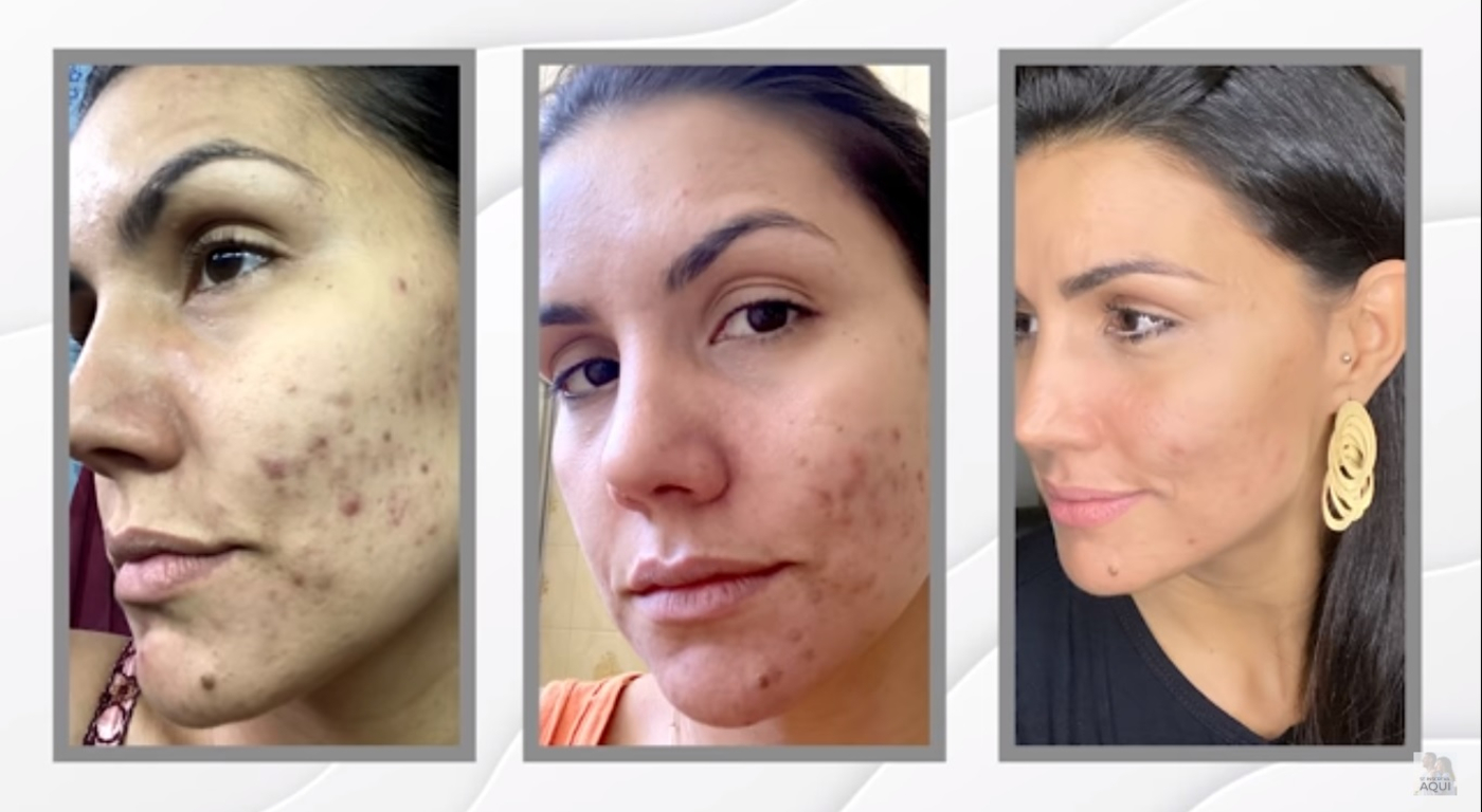 “Eu estou maquiada, então cobre muito. No primeiro mês estourou bastante espinha e ele [o médico] falou que era normal do tratamento, que minhas espinhas iriam piorar. Ainda está saindo bastante”, conta.