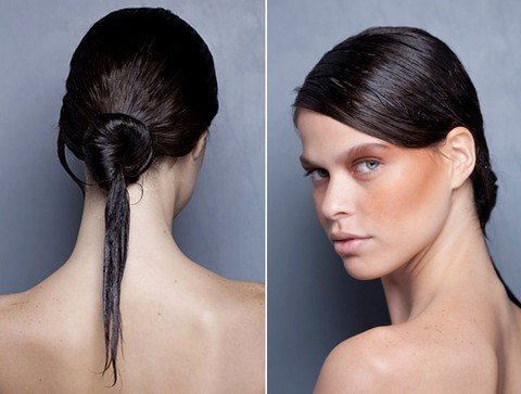 O penteado da Melk Z-Da, lindo e super simples, se resume em um rabo de cavalo com nó formado acima da altura da orelha. Com aspecto molhado, basta usar bastante mousse e spray gloss para conseguir o mesmo efeito.