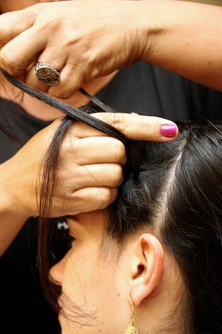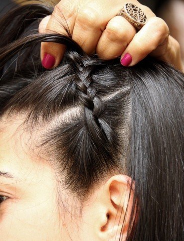 Passo 3: Inicie a trança por essa mecha, seguindo o contorno da cabeça