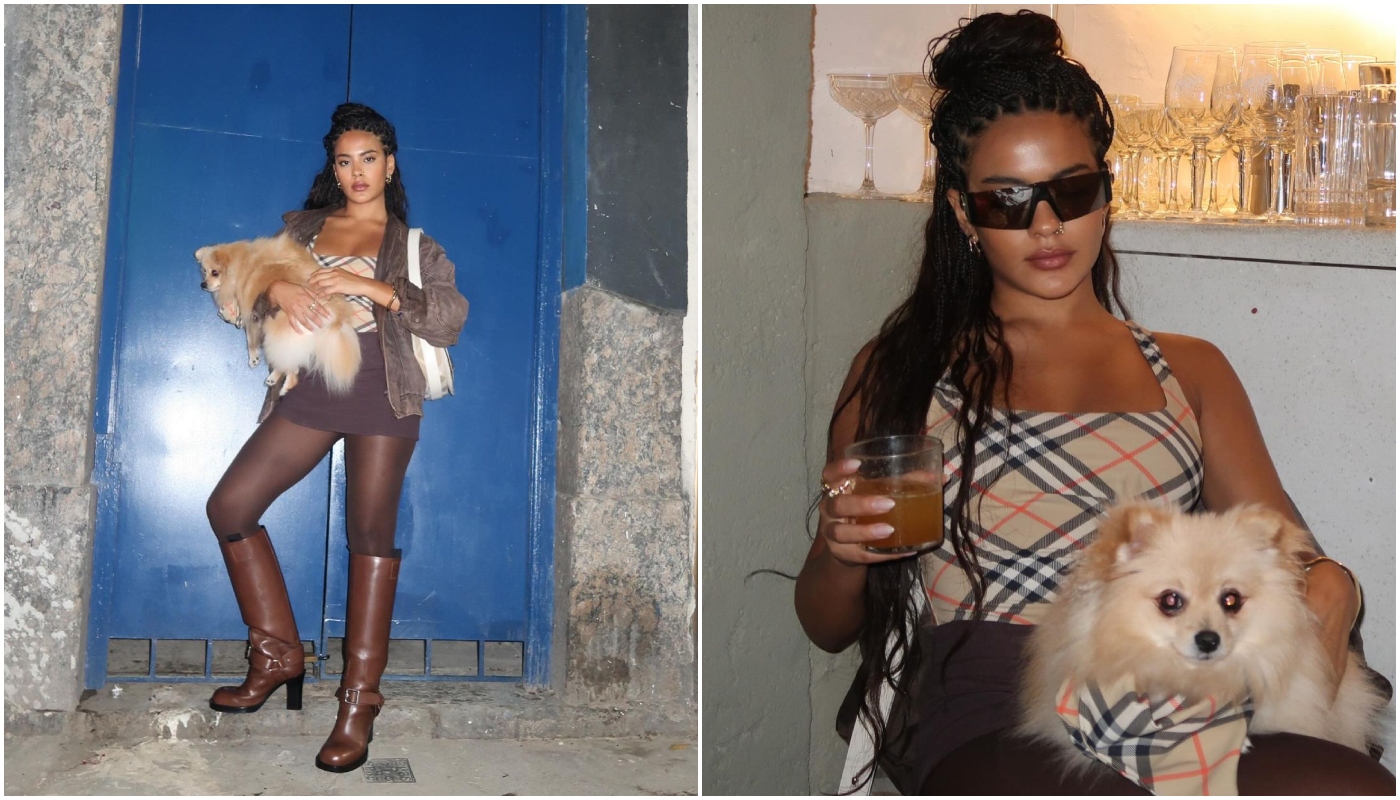 Na manhã desta quarta-feira (07), Bella Campos mostrou cliques de um passeio que fez com sua cachorrinha, Zoe. A atriz saiu para jantar e combinou regata e bolsa com um lenço na pet da raça Spitz Alemão. Todos os itens são grifados e custam uma pequena fortuna.