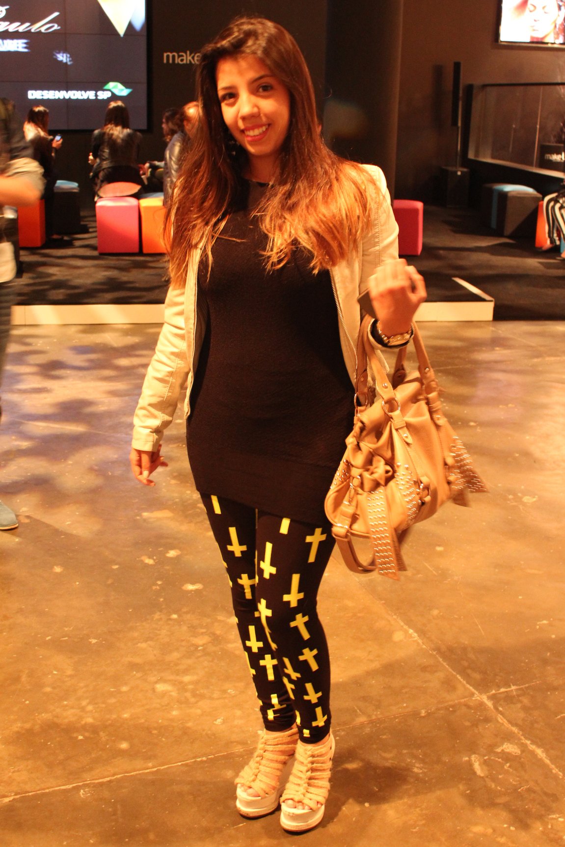 A estudante Vanessa Oliveira usou um modelo de calça preta com cruzes amarelas