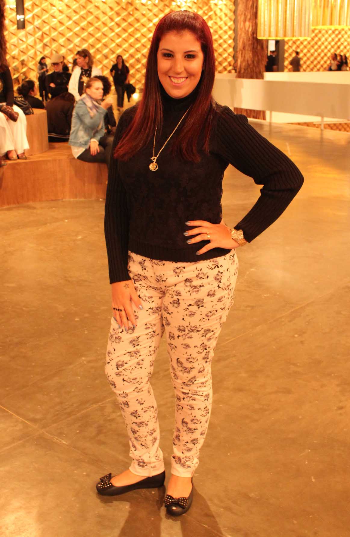 Daniele Marques, assistente contábil, usou uma calça com tom clarinho rosado com algumas flores estampadas