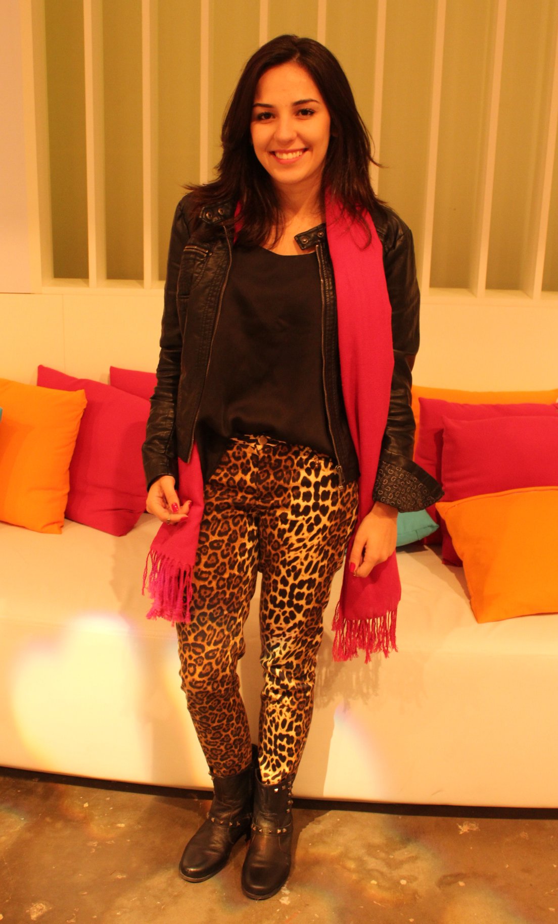 Barbara Abreu era uma das mais estilosas. A estudante usou uma calça com estampa de oncinha que ficou uma graça!