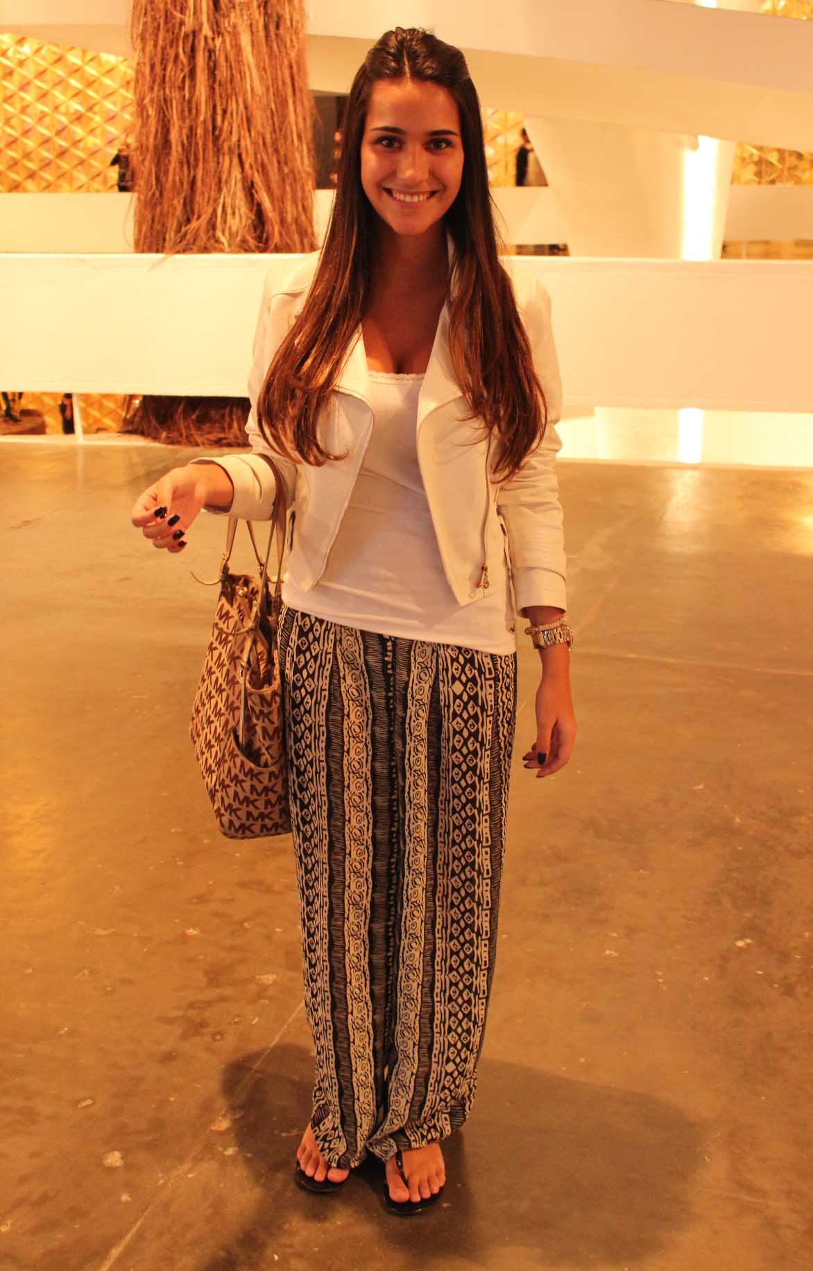 Jennifer Leite fez o look despojado, ao mesmo tempo que elegante. A estudante usou uma calça estampada superfofa e bem larguinha