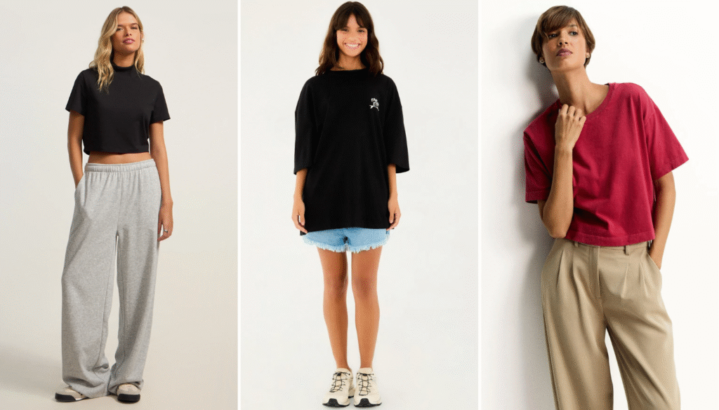 Cropped, oversized e boxy fit: qual é a diferença entre as modelagens de camiseta?