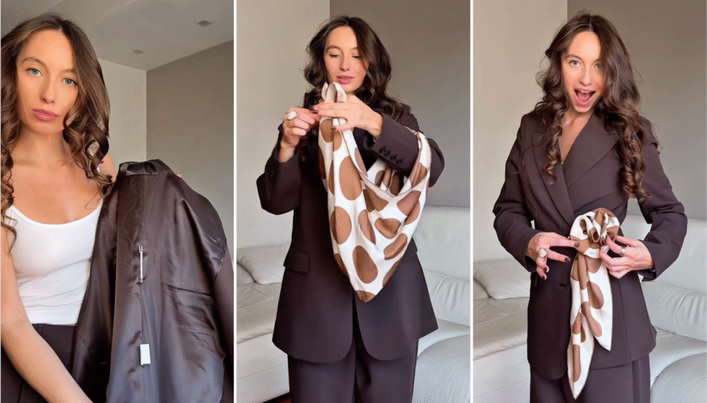 Para resolver isso, então, a influenciadora Alina Kamy ensinou um truque para acinturar o blazer de maneira delicada e que já transforma o resultado final.