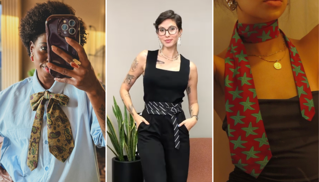 Bolsas e cintos, por exemplo, também têm um papel importante. Além disso, aproveite que os lenços voltaram com tudo para colocá-los em suas produções. Veja algumas maneiras de inclui-los. As gravatas também ganharam espaço nos looks femininos e são ótimas nesses momentos.