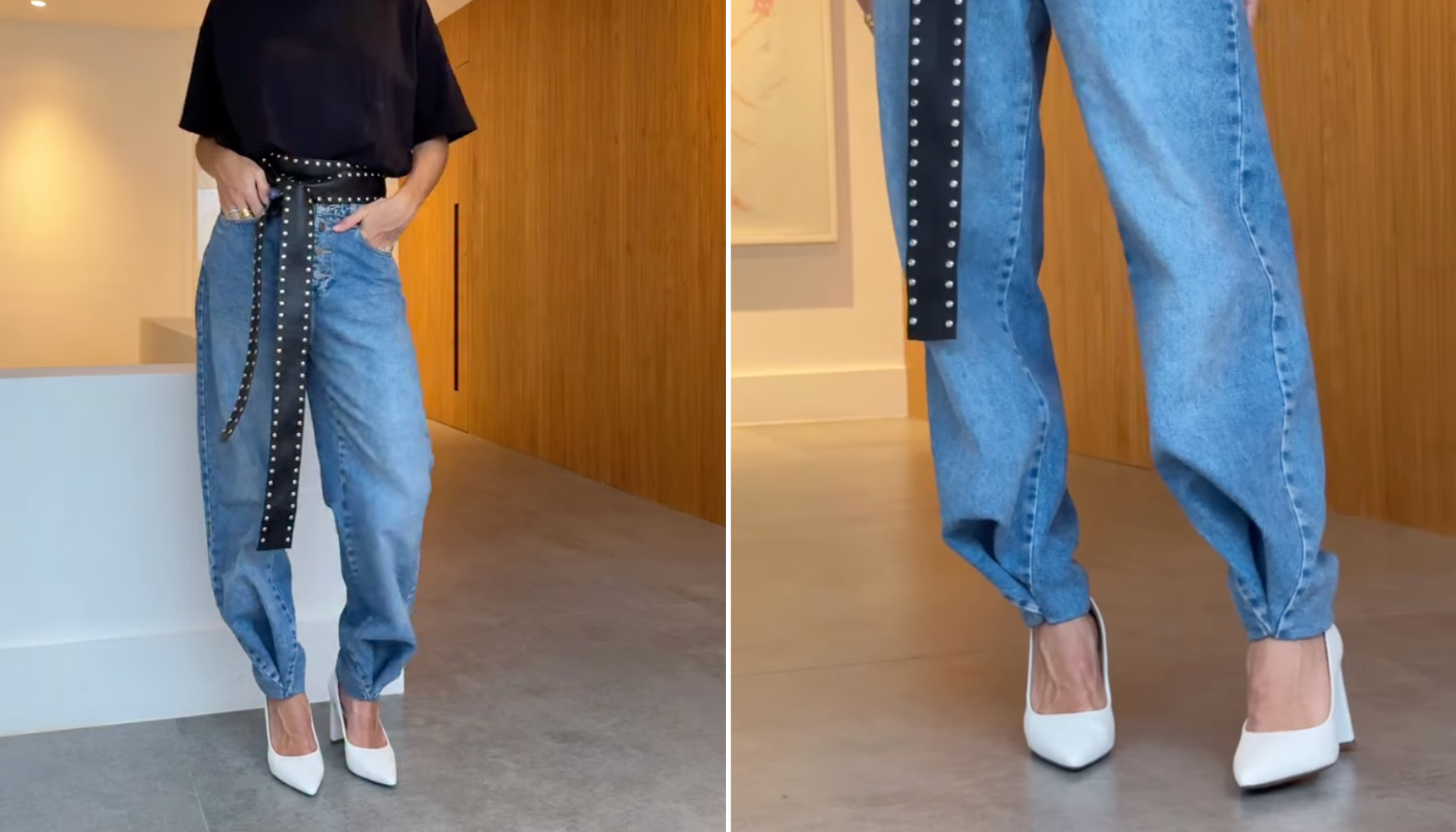 Você não precisa de várias peças no seu guarda-roupa. Um truque de styling simples, por exemplo, ajuda a transformar uma wide leg em calça cenoura. A dica foi publicada no Instagram pela Julia Nolasco e não leva mais do que 15 segundos para o resultado.