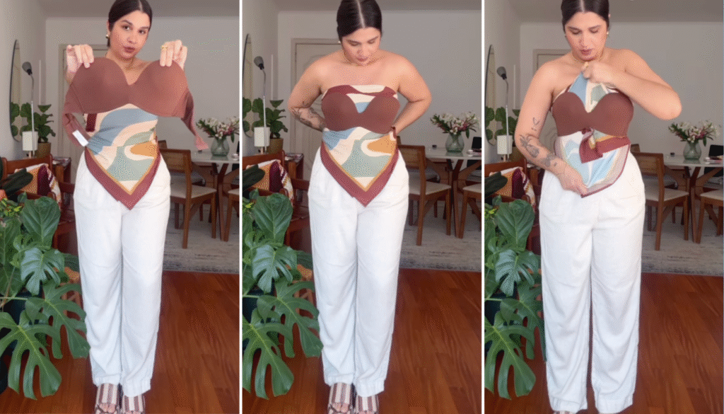 Usar um lenço como top sem alças, por exemplo, pode trazer um certo desconforto e a insegurança de que ele poderá cair, a não ser que você use um truque. Veja qual!