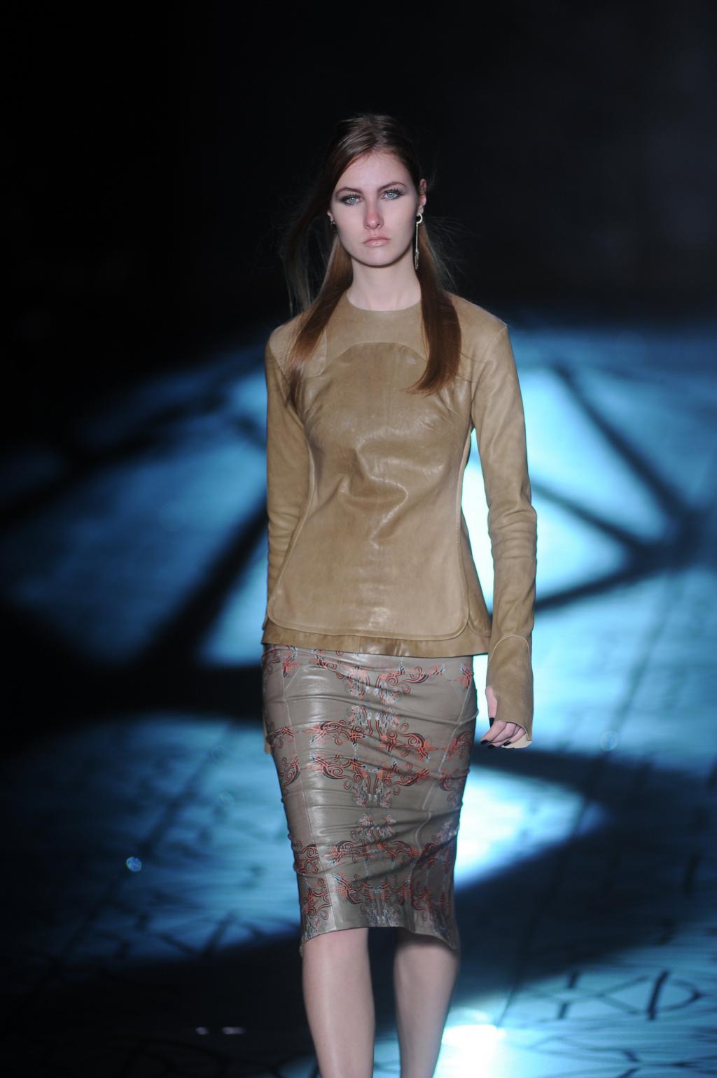 Saia de couro no desfile Animale no SPFW