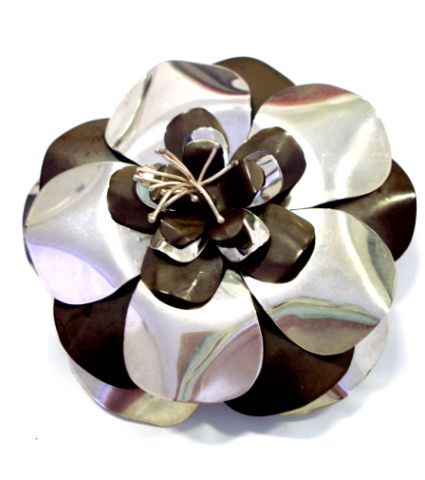 Camélia de prata rodinada e ouro negro bicolor da Iolanda Figueiredo. R.345,00