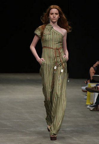 Frescor, esta palavra poderia descrever muito bem o desfile da grife de Kátia Ferreira. A estilista, que possui uma instituição em Brasília que gera empregos a famílias carentes, faz com eles a marca da grife: os bordados. E eles foram apresentados de forma moderna e jovem. Pantalonas, vestidos curtos e com amplitude, muitas regatas e paletós bem sequinhos foram usados em sobreposições, até mesmo branco com branco. Uma delícia de verão!