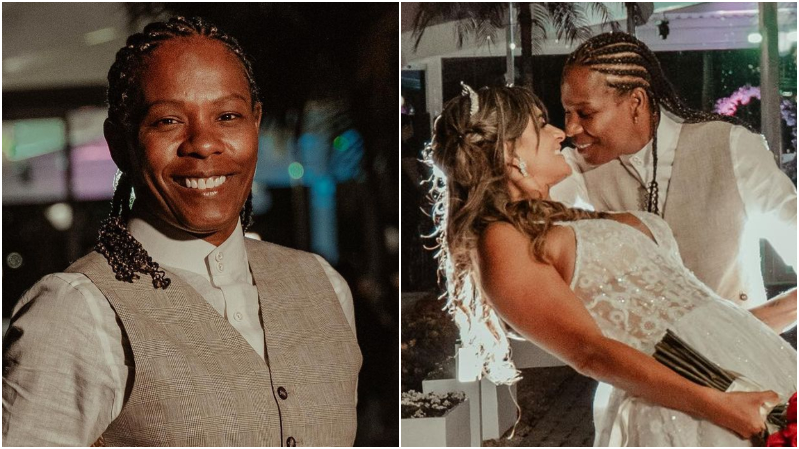 Após cinco anos juntas, Formiga e Erica Jesus subiram ao altar! A ex-jogadora de futebol, que fez história na Seleção Brasileira, publicou recentemente as fotos da cerimônia e do seu look, que chamou a atenção pela originalidade que sempre fez parte de quem Formiga, aos 45 anos, é: camisa, colete e bermuda.