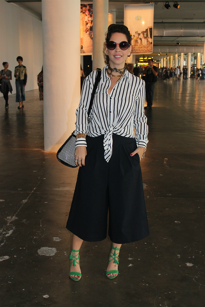 Ainda faltam alguns meses até o verão, mas o calor já chegou à cidade de São Paulo, onde aconteceu a 40ª edição da São Paulo Fashion Week, que desfilou tendências para o inverno 2016. Para garantir produções fresquinhas, mas sem perder a elegância, muitas visitantes apostaram em um combo que está super em alta nessa estação: partes de cima e de baixo largas.