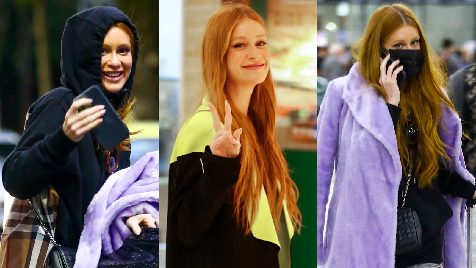 Falando em mudança, no saguão do aeroporto Santos Dumont, Marina deixou o casaco de lado e mostrou o que estava vestindo por baixo. Enquanto atendia fãs e, depois, aguardava seu transporte, a atriz usava um moletom preto na frente e com um xadrez Burberry estampado nas costas. Ela manteve a elegância, porém, adicionando um toque de surpresa, no melhor estilo britânico.