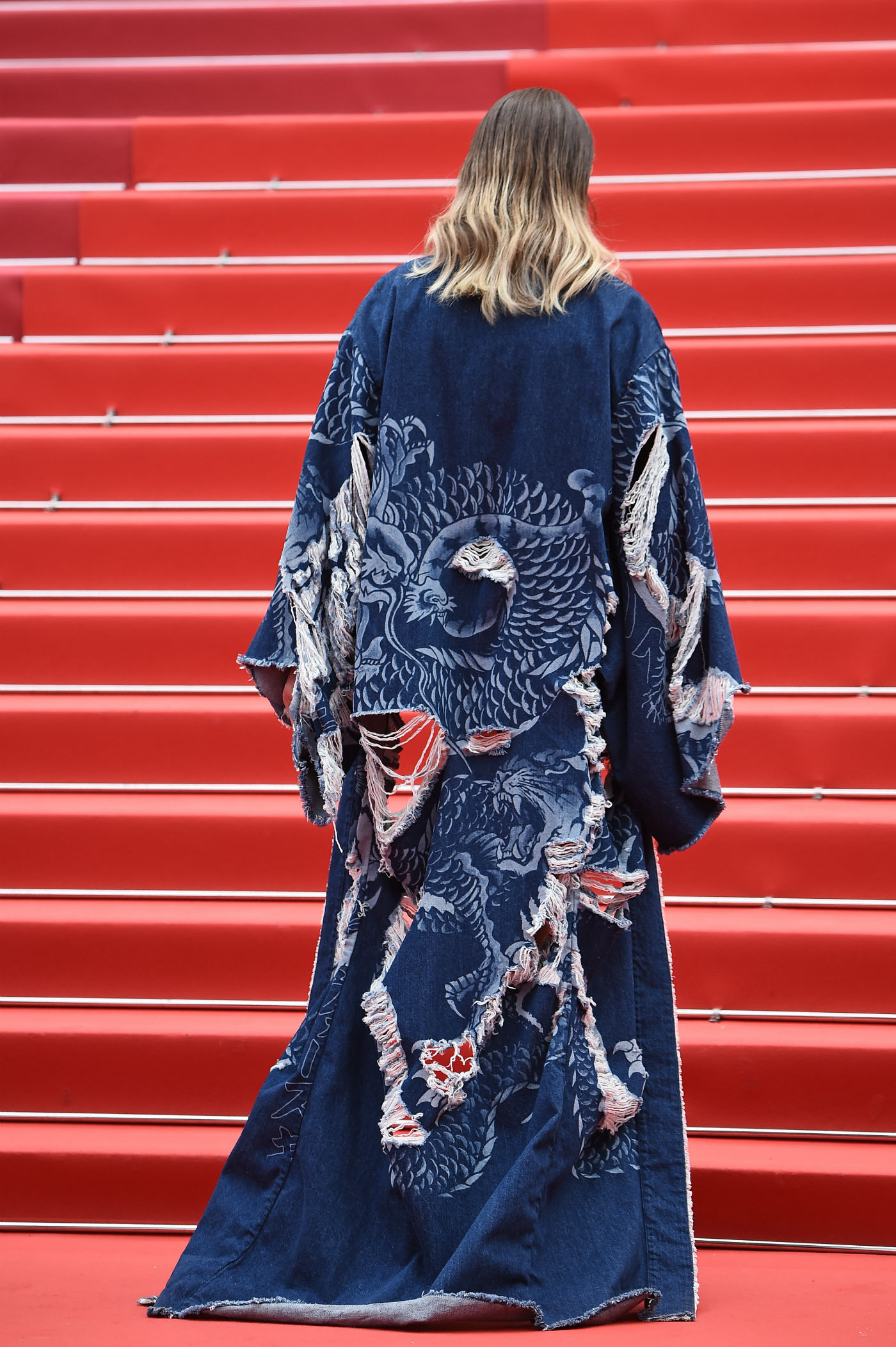 A produção entrou, com certeza, para a triagem dos melhores looks de Cannes 2019 e atraiu olhares especialmente por conta de uma capa em jeans destroyed pra lá de moderna. Confira: