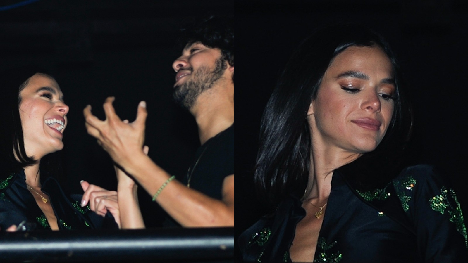 Amiga de Priscila Alcântara, Bruna Marquezine marcou presença no show da cantora e, claro, aproveitou para arrasar no look. Ao lado de Xolo Maridueña, ator com que viverá par romântico em seu primeiro filme internacional, Sasha Meneghel e João Figueiredo, a atriz apostou em um conjunto clássico com uma boa pitada de sensualidade.