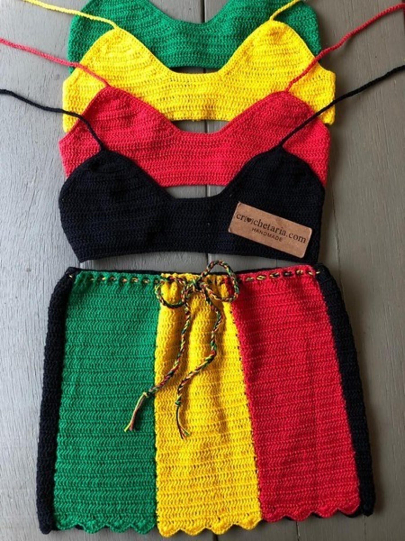 O top e a saia em questão são feitos à mão pela Crochetaria. O conjunto “Marley” está à venda no e-commerce da marca por R$ 289,99 e é possível escolher a cor do top, verde, preto, vermelho ou amarelo, como o de Marquezine.
