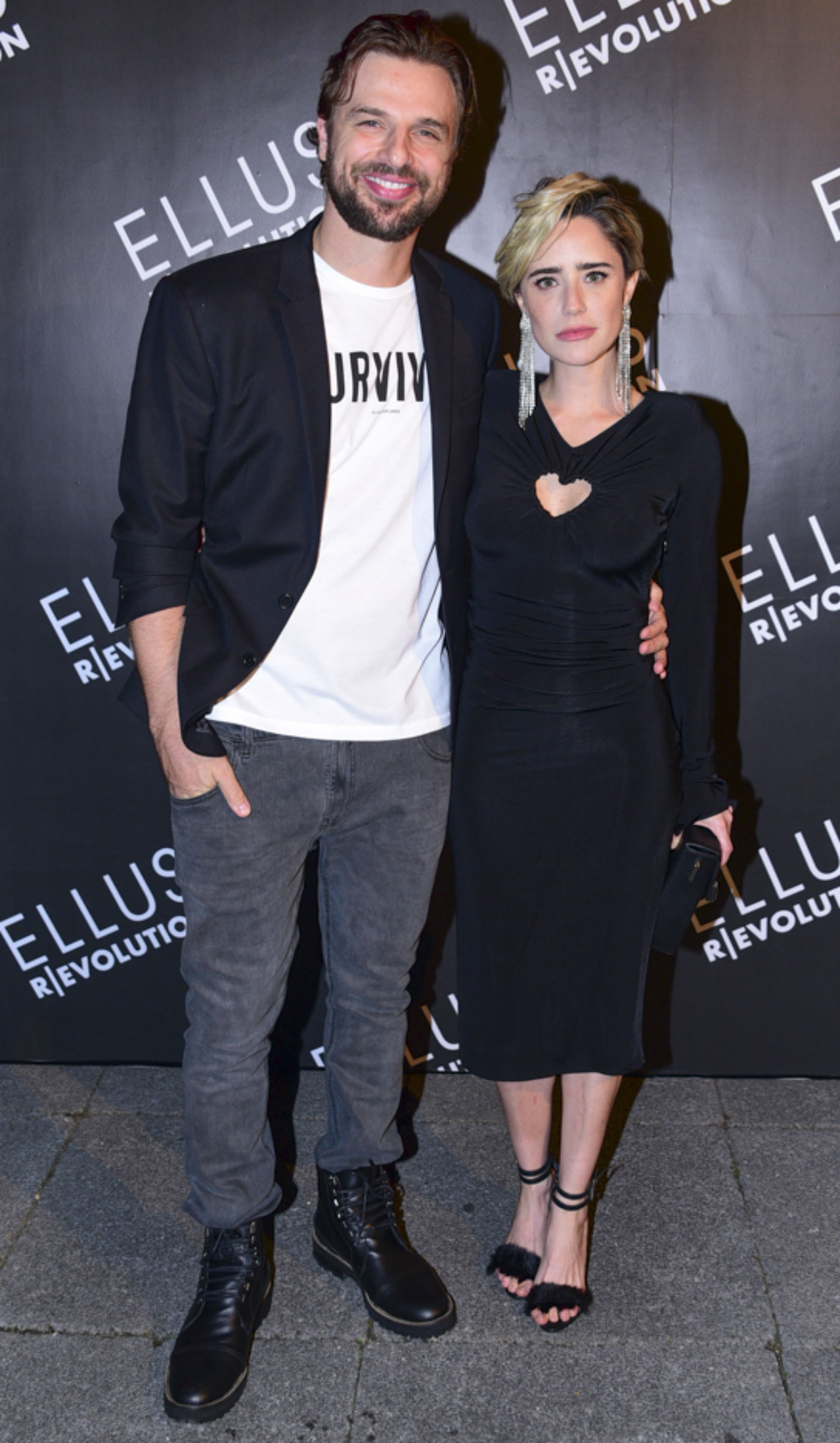Fernanda Vasconcellos participou de um evento de moda na cidade de São Paulo e, ao lado do companheiro Cássio Reis, ela posou para as câmeras com um look básico, mas que tinha um detalhe bem diferente.